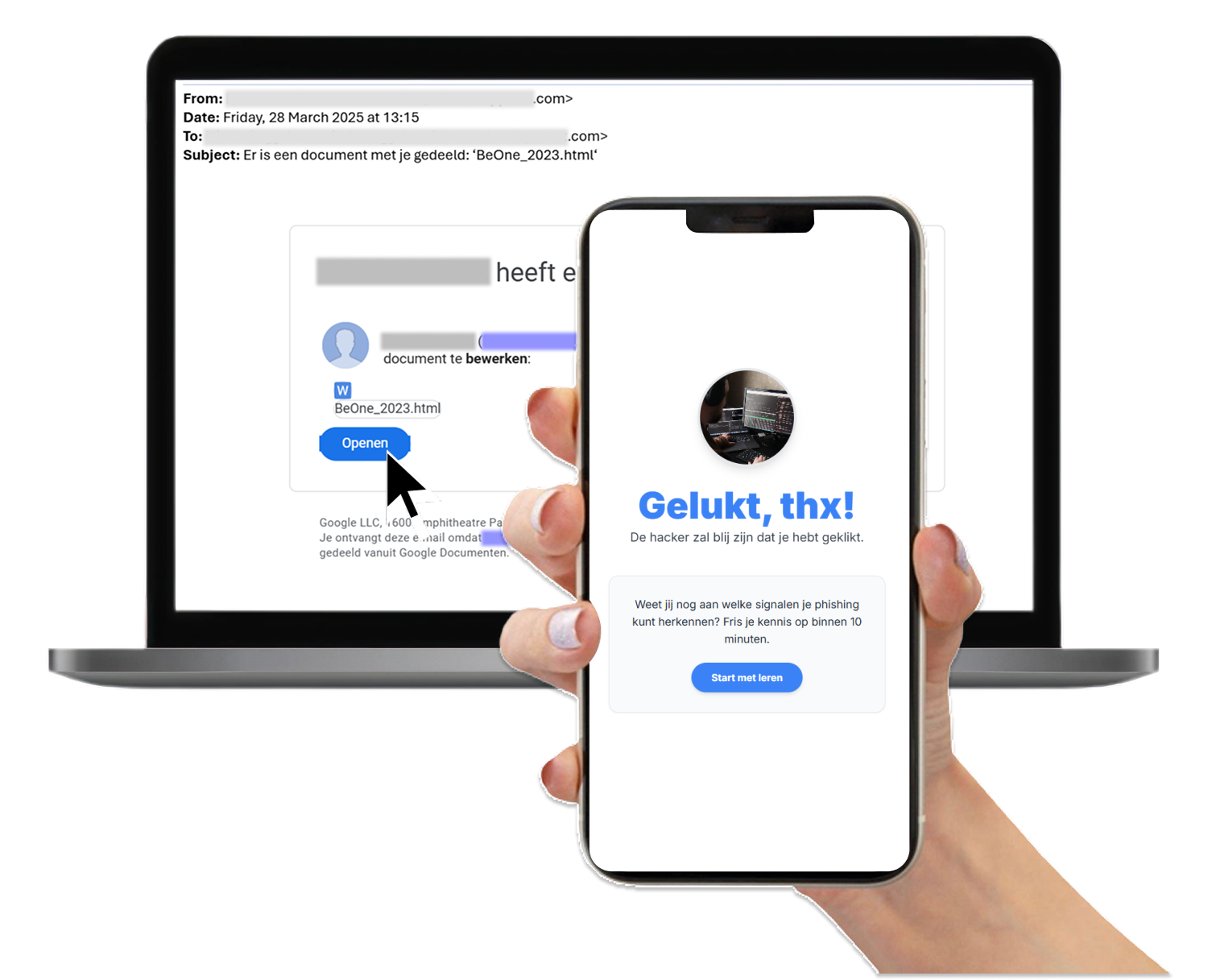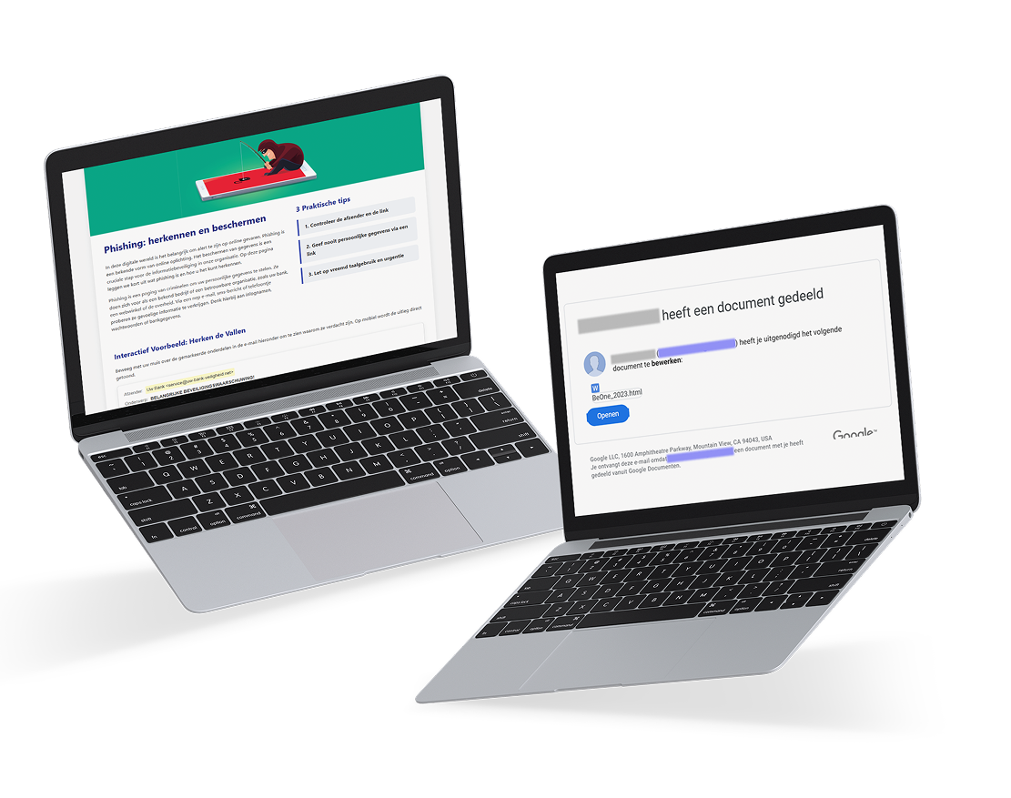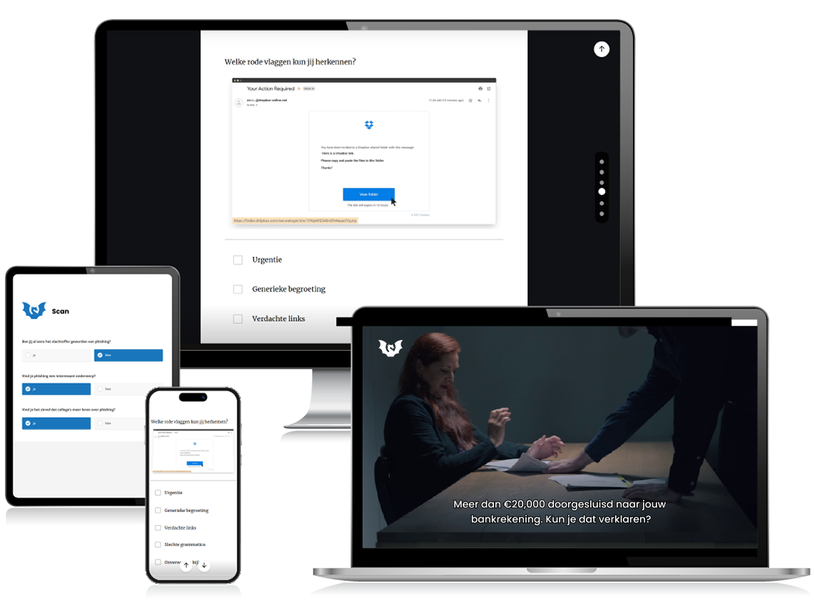 The phishing learning campaign raises awareness and alertness. The phishing simulations test behaviour. If someone clicks on a phishing e-mail from the simulation, an extra learning bite automatically follows. This way the learning campaign continues as normal, but is supplemented based on real behaviour.